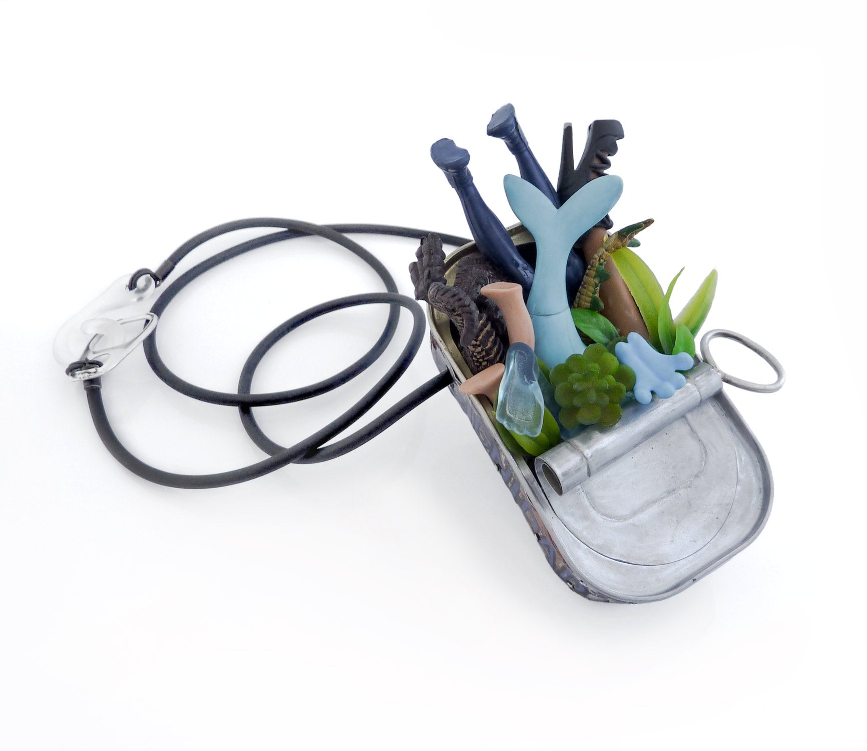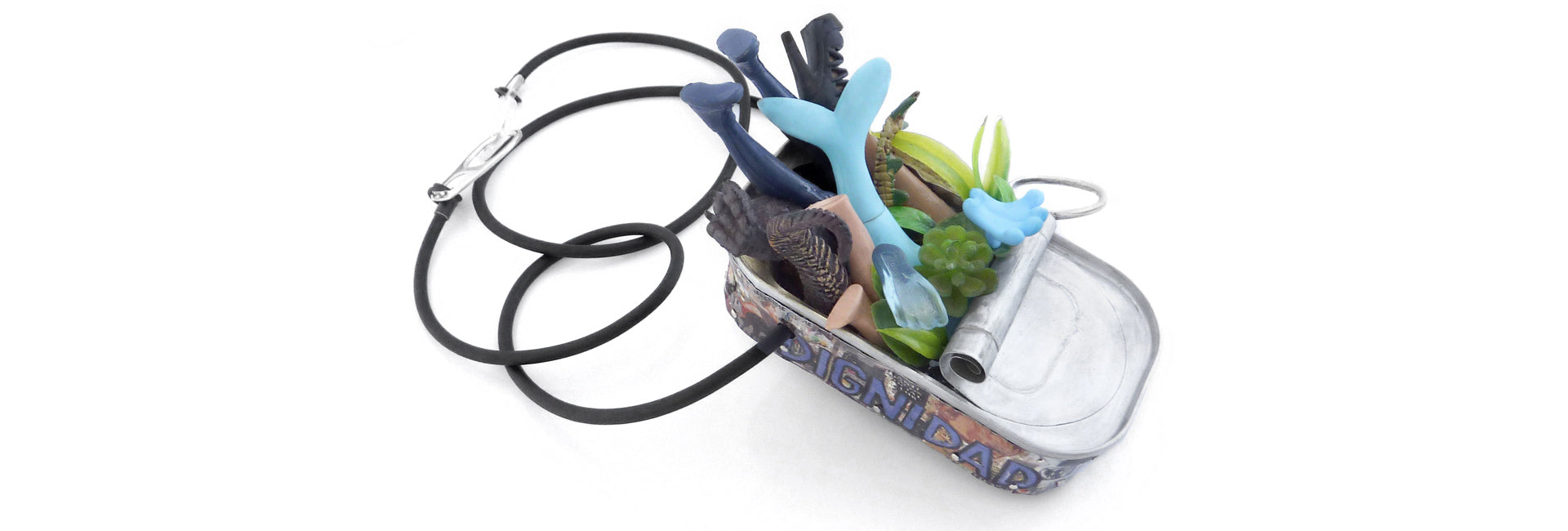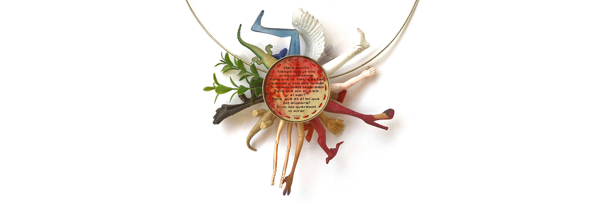 En la creación de mis "joyas de arte", utilizo objetos encontrados, juguetes abandonados y materiales de descarte, transformándolos en piezas únicas y significativas, encontrando belleza en lo que a menudo es considerado “basura”.